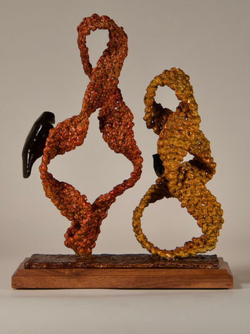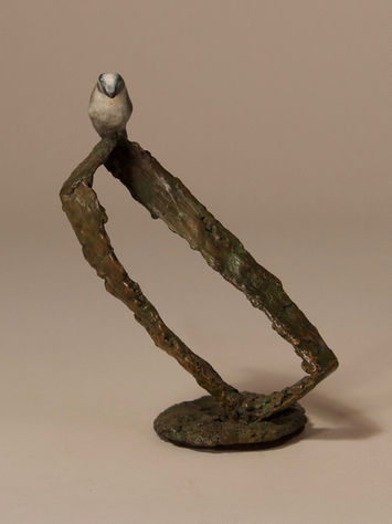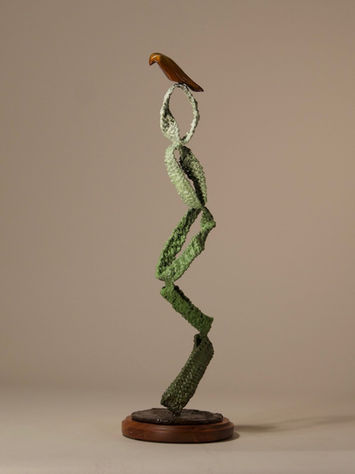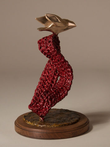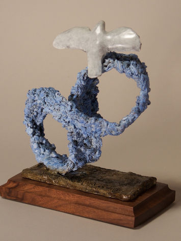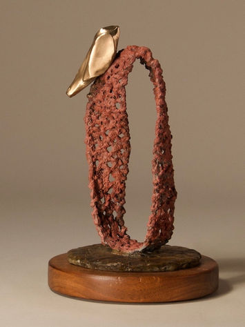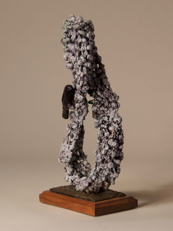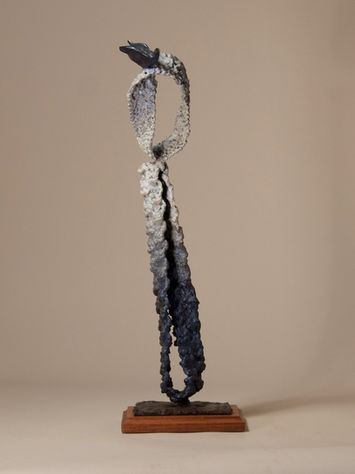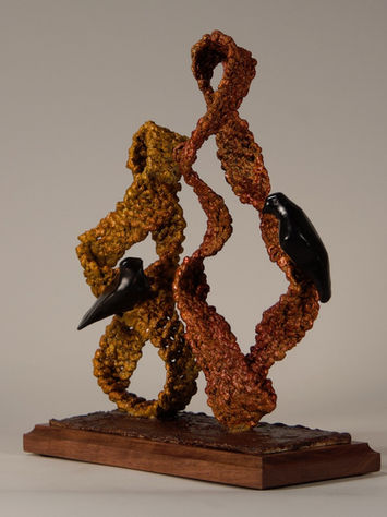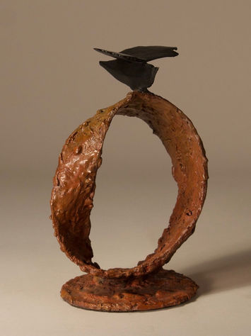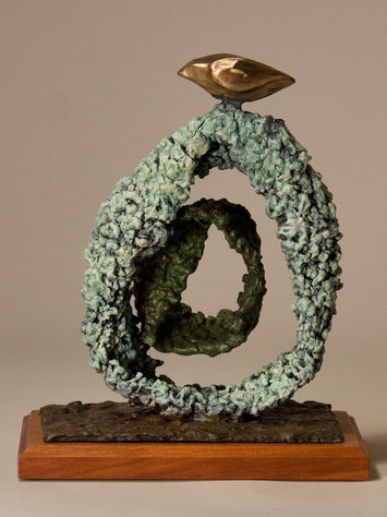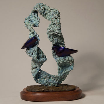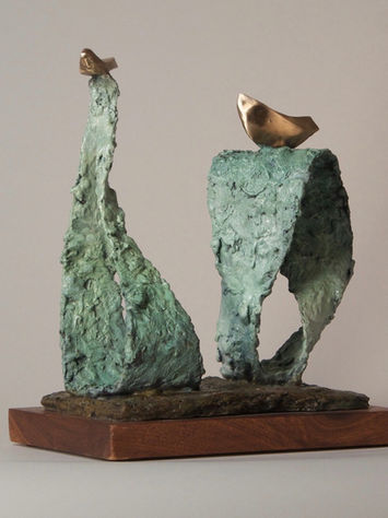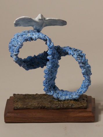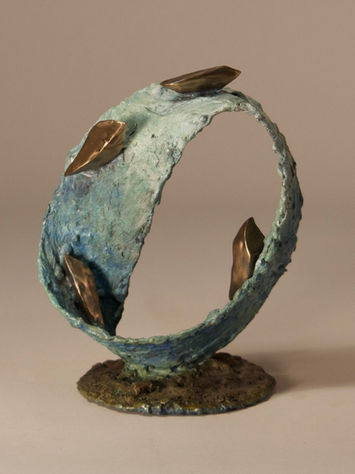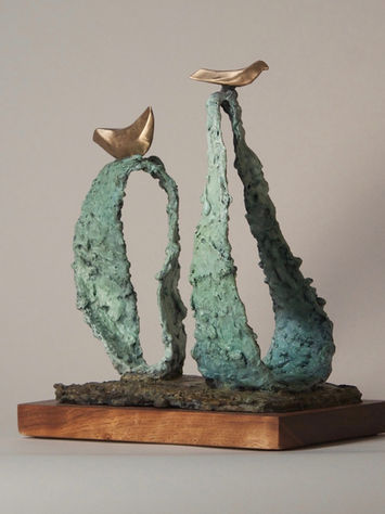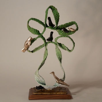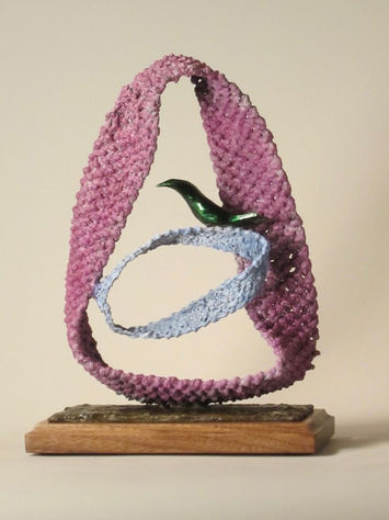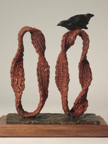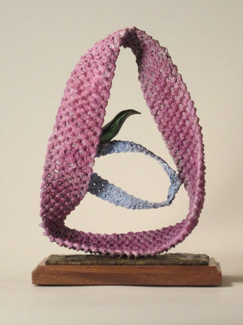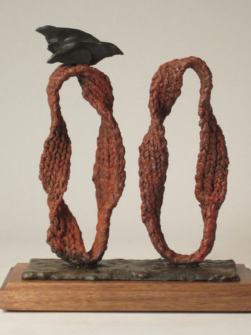 I enjoy the idea of combining the ancient medium of bronze and the ancient women's work of knitting with the abstract form of the Moebius strip and the small abstract birds.
