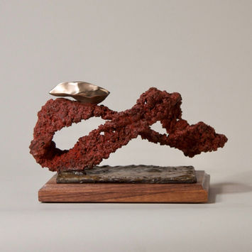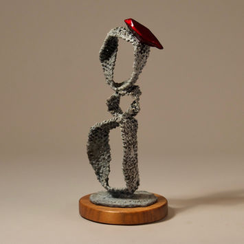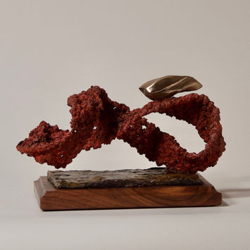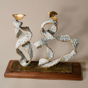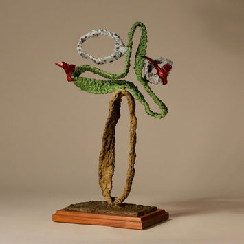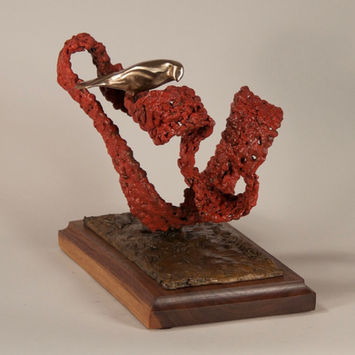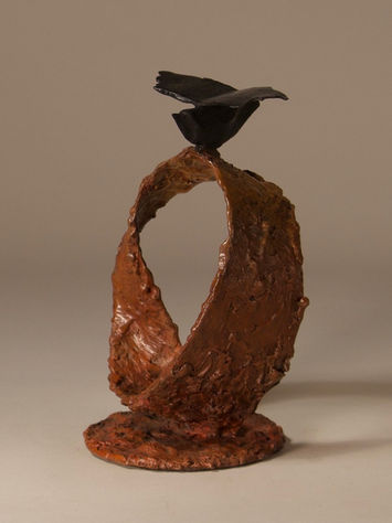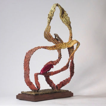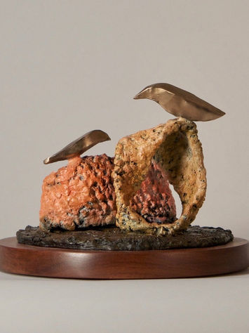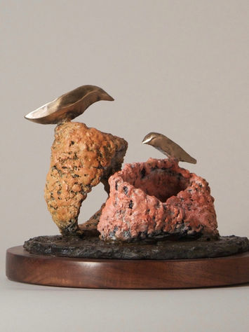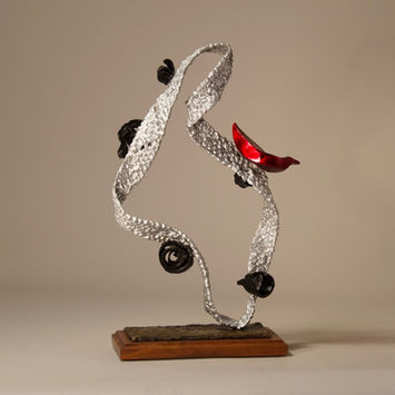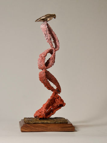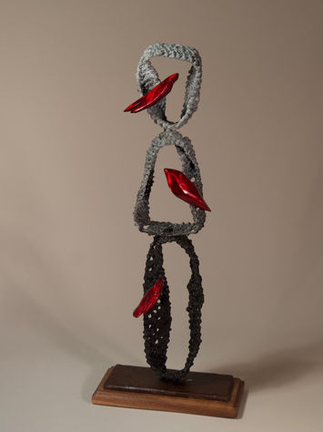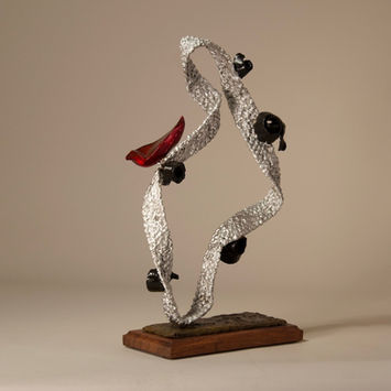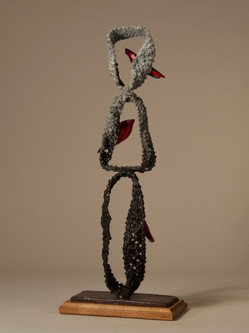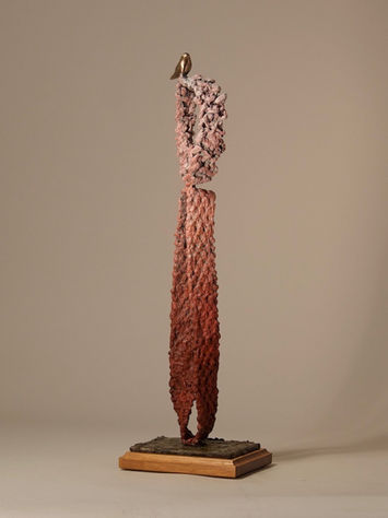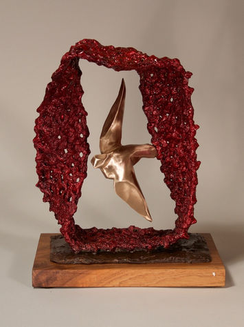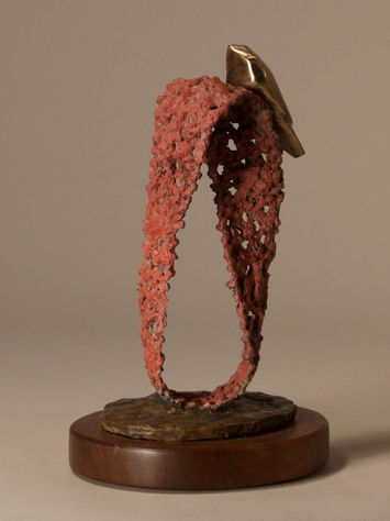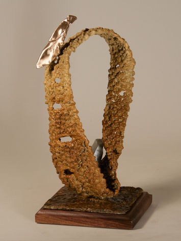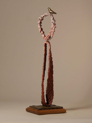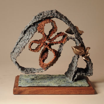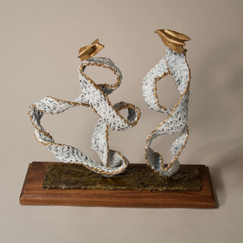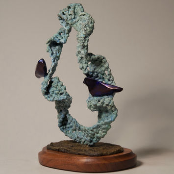I enjoy the idea of combining the ancient medium of bronze and the ancient women's work of knitting with the abstract form of the Moebius strip and the small abstract birds.