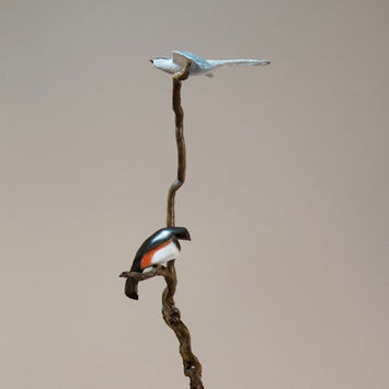 In the summer of 2001 I made the first of several series of small fanciful bronze trees, whose branches contained variously birds, leaves, blossoms, or butterflies. These little trees were cast directly in bronze from branches and shrubs I found while walking, and as a result they are one-of-a-kind.